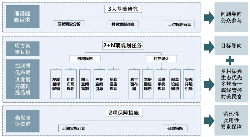 基于現(xiàn)狀基礎(chǔ)研究,以促進(jìn)鄉(xiāng)村全面振興為目標(biāo),梳理現(xiàn)狀村莊問題及發(fā)展訴求,落實(shí)上位及相關(guān)規(guī)劃要求,統(tǒng)籌協(xié)調(diào)各類空間矛盾,堅(jiān)持問題導(dǎo)向與目標(biāo)導(dǎo)向相結(jié)合,開展“多規(guī)合一”的實(shí)用性村莊規(guī)劃編制工作,形成可實(shí)施的一張藍(lán)圖。