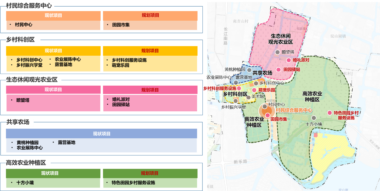三區:高效農業種植區、生態休閑農業觀光區、共享農場;