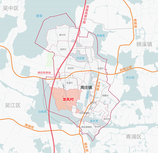 龍鳳村位于周莊鎮新鎮區,東起西涇溇港,西至白蜆湖,南起白蜆湖,北至南村港,緊鄰周莊古鎮,位于長三角一體化示范區協調區,區位條件優越。村域總面積約327.08公頃。