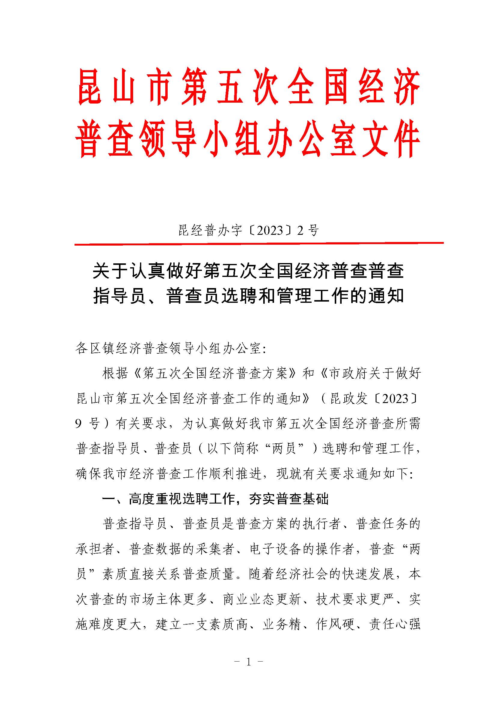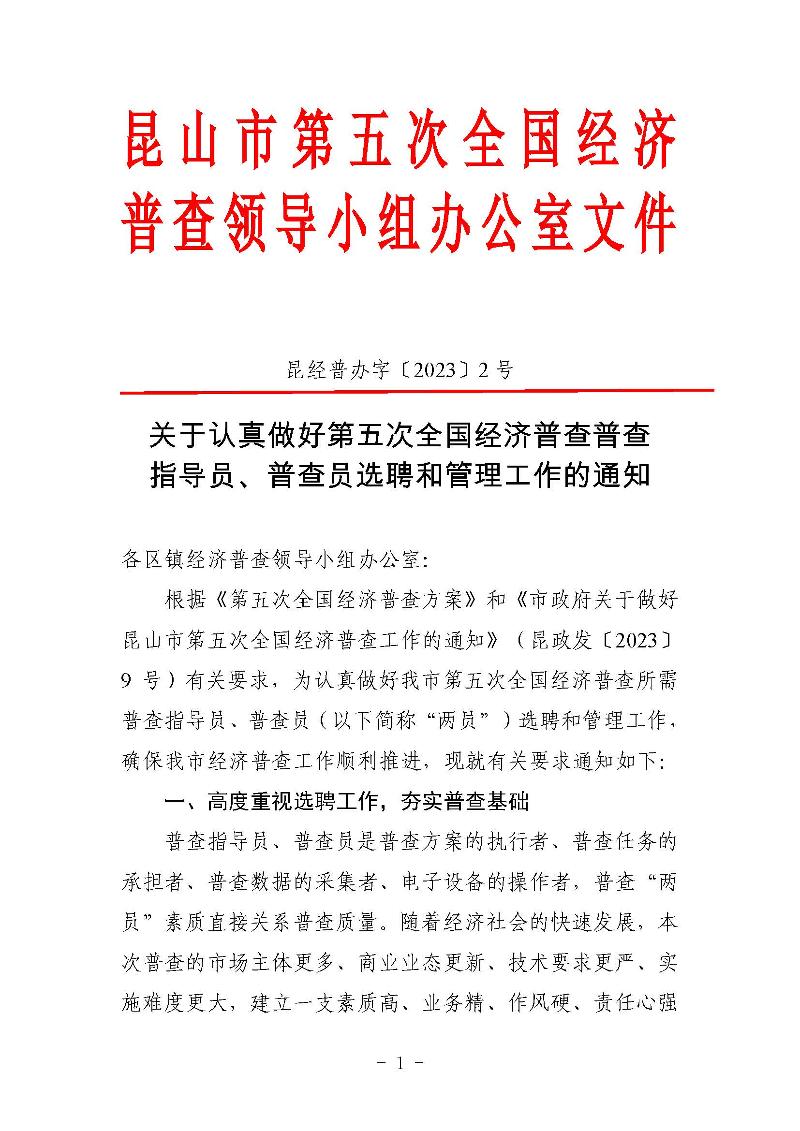 關于認真做好第五次全國經濟普查普查指導員、普查員選聘和管理工作的通知