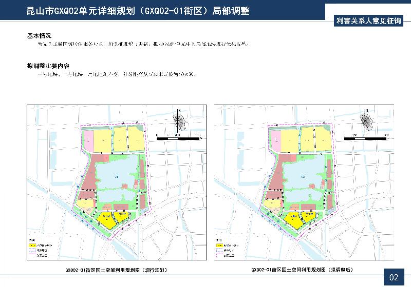 昆山市GXQ02單元詳細(xì)規(guī)劃(GXQ02-01街區(qū))局部調(diào)整征求利害關(guān)系人意見的公告