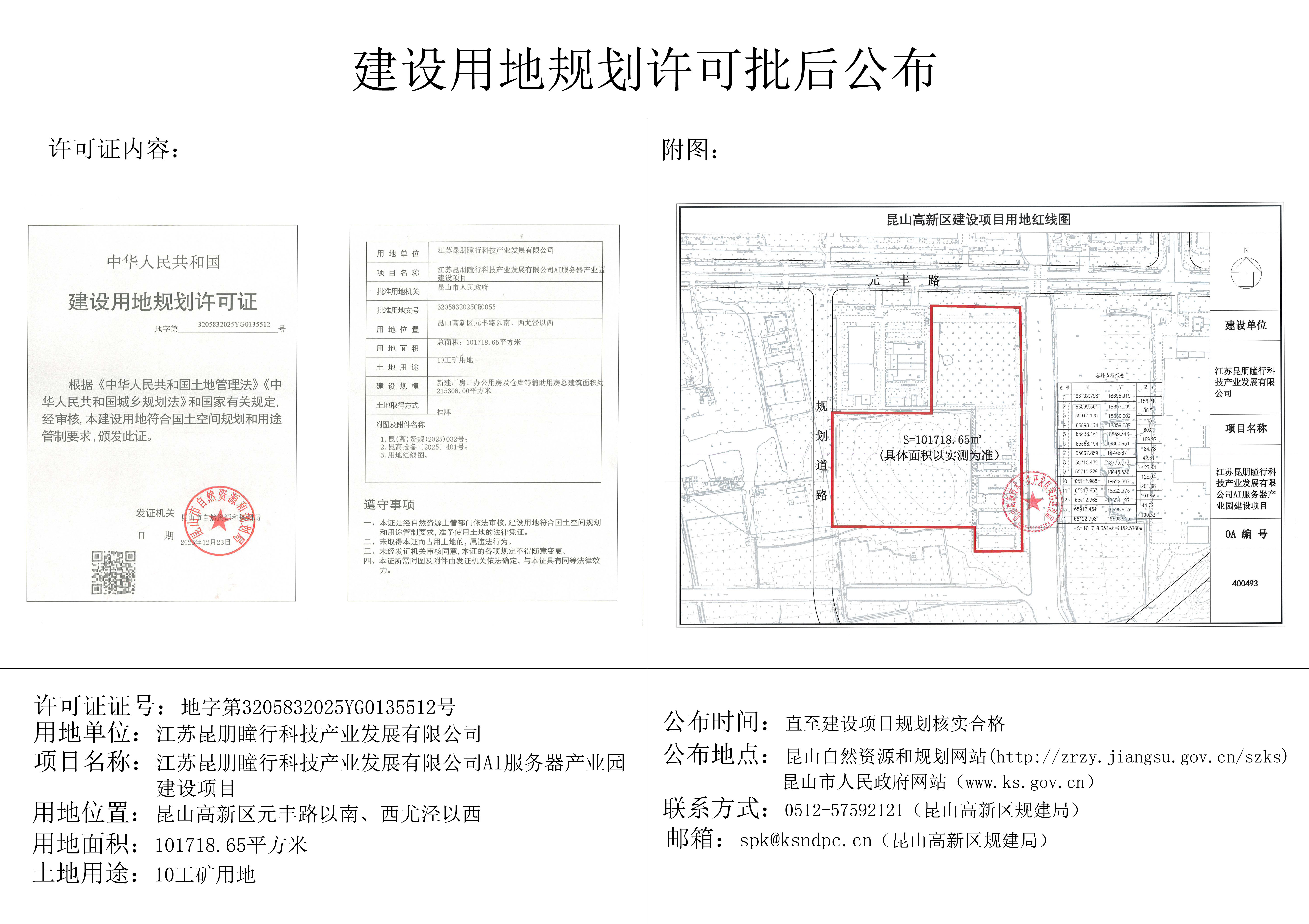 江蘇昆朋瞳行科技產業發展有限公司AI服務器產業園建設項目建設用地規劃許可