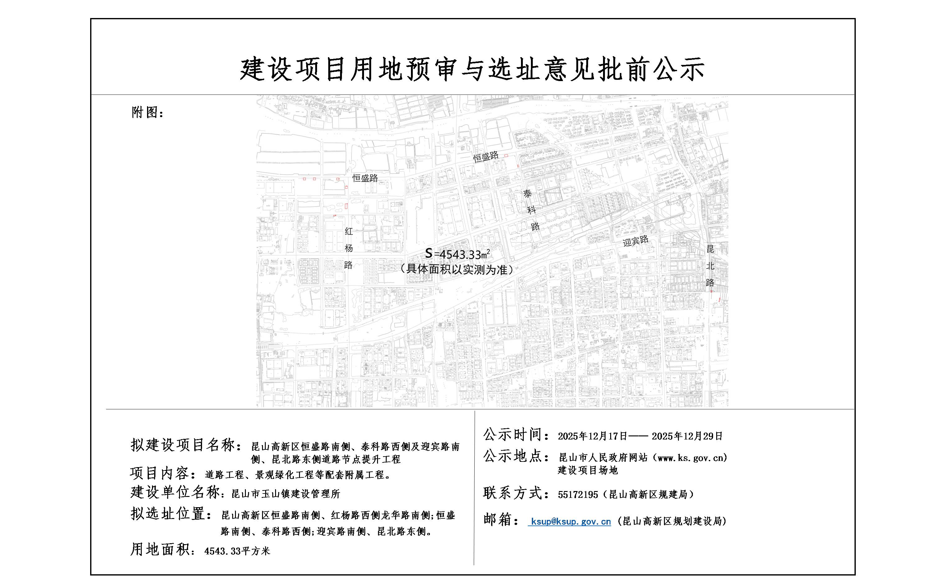 昆山高新區(qū)恒盛路南側(cè)、泰科路西側(cè)及迎賓路南側(cè)、昆北路東側(cè)道路節(jié)點(diǎn)提升工程