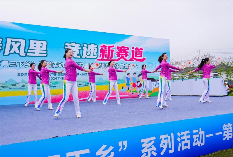 活動(dòng)伊始,各區(qū)鎮(zhèn)依次展示各自的特色項(xiàng)目,同臺(tái)競(jìng)技,同臺(tái)交流,豐富全民體育健身的活動(dòng)內(nèi)容和形式。舞臺(tái)上,姑娘們動(dòng)作整齊、輕松活潑,嘁嘁嚓嚓的連廂節(jié)奏,就像一曲春天里新時(shí)代的贊歌,把觀眾置身江南水鄉(xiāng)獨(dú)有的韻致中;柔力球表演《中華龍舞起來》動(dòng)作輕柔而有勁,舞出傳承,迸發(fā)出柔力球力與美的別樣韻味;廣場(chǎng)舞《最好的我們》以動(dòng)感的旋律和炫酷的舞步,奏響“三下鄉(xiāng)”主旋律;秧歌《盛世秧歌》更是將現(xiàn)場(chǎng)氛圍推向高潮。