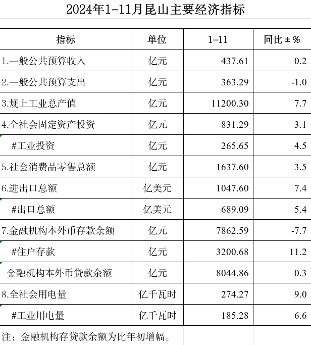 2024年1-11月昆山主要經(jīng)濟(jì)指標(biāo)