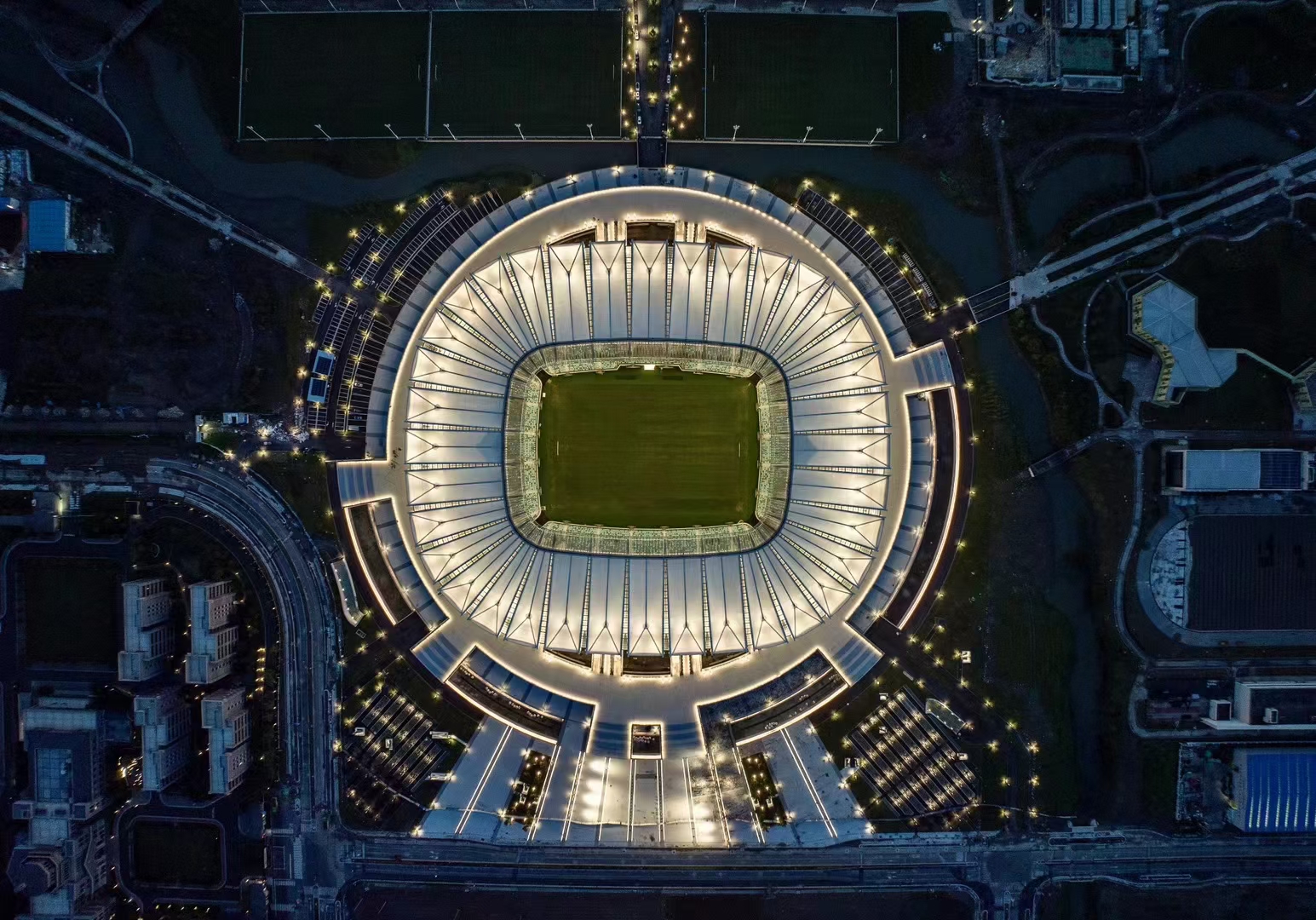 昆山奧體中心是在中國準備舉辦2023亞足聯(lián)亞洲杯契機下,對照FIFA標準建造的專業(yè)足球場,于2020年11月開工,2023年5月建成投用,總造價23.8億元,現(xiàn)為昆山文商旅集團旗下資產(chǎn)。場館占地面積約200000平方米,總建筑面積約135093平方米,專業(yè)足球場面積為107951平方米,共5層,高度47.4米。足球場設置4.5萬個觀眾坐席、86個商務包廂,是目前江蘇省唯一一座滿足國際足聯(lián)比賽要求的國際一流的專業(yè)足球場。昆山奧體中心距離上海虹橋機場約47公里【車程約60分鐘】,距離昆山高鐵站16公里【昆山到上海虹橋高鐵站18分鐘,到蘇州站25分鐘】。蘇州軌道交通11號線,距離場館較近處設有兵希站、夏駕河公園站和盛莊站,步行距離1.5-3公里。周邊10公里范圍內(nèi),有時代皇冠假日酒店、金陵大飯店、隆祺建國飯店、金鷹尚美酒店等多家豪華酒店及商業(yè)配套設施。