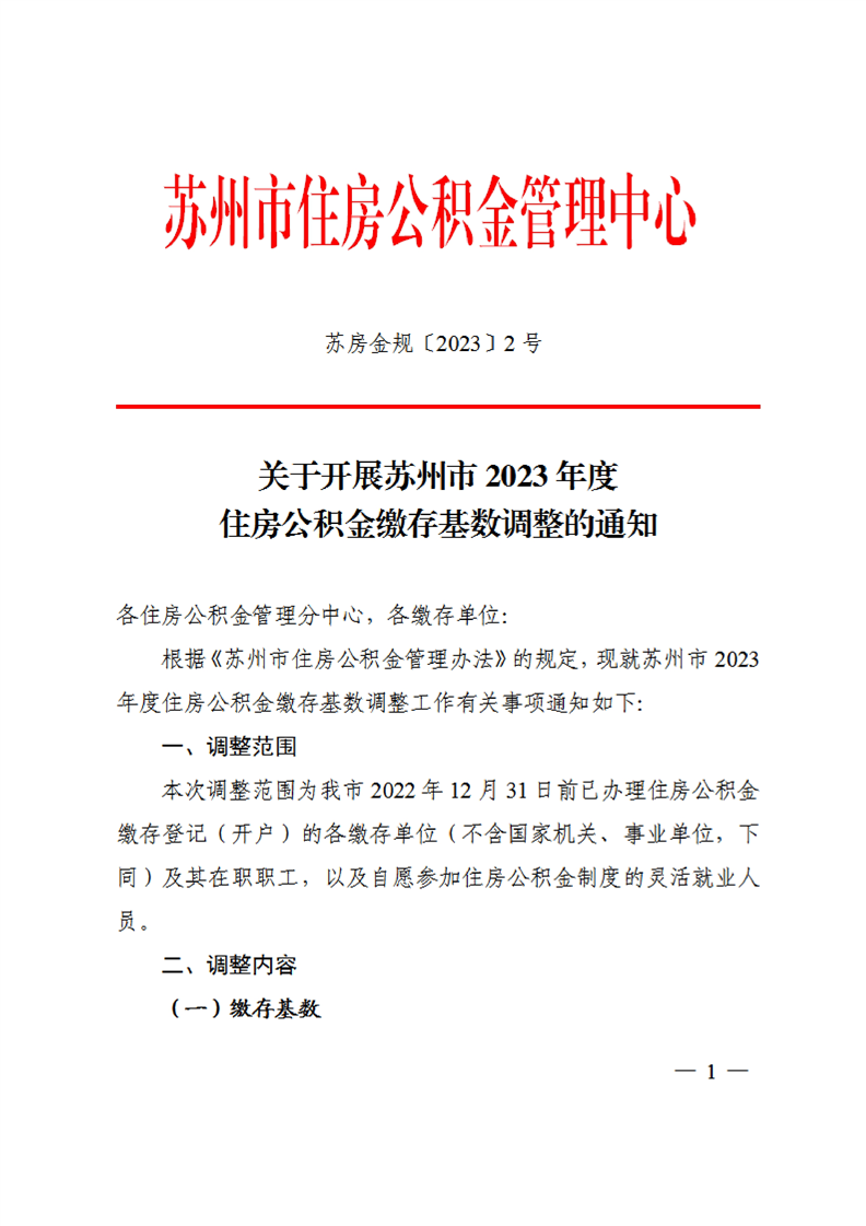 關(guān)于開展蘇州市2023年度住房公積金繳存基數(shù)調(diào)整的通知